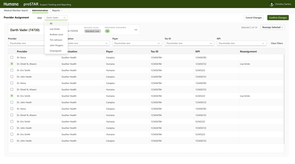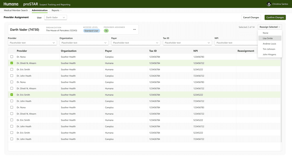 Reduced administrative burden on Humana administrators by enabling provider-side ownership of assignments