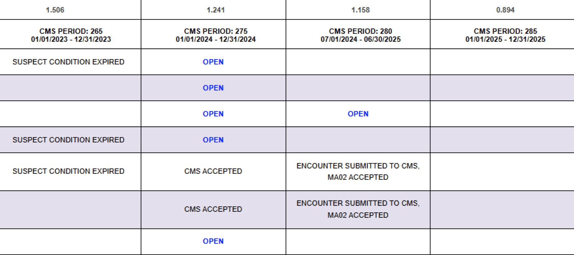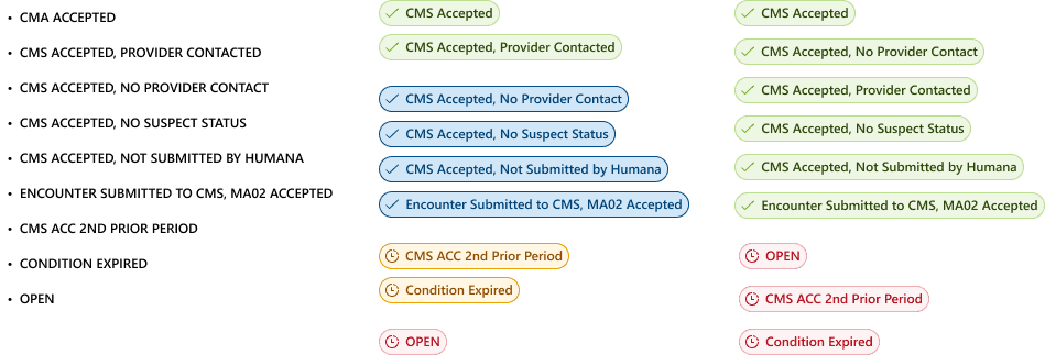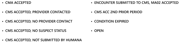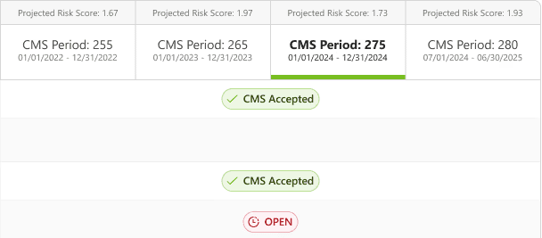 If MRA coders can focus on the single CMS period with distinguished status , they can quickly identify the HCC's acceptance status so that they can move on to the next tasks.