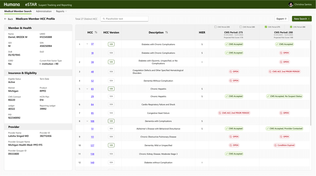 The STAR platform—used to track Medicare Advantage members’ conditions and risk scores—hadn’t been updated in years. Both Humana associates and healthcare providers were struggling with outdated features that slowed them down, introduced unnecessary work, and didn’t reflect how care teams actually operated.