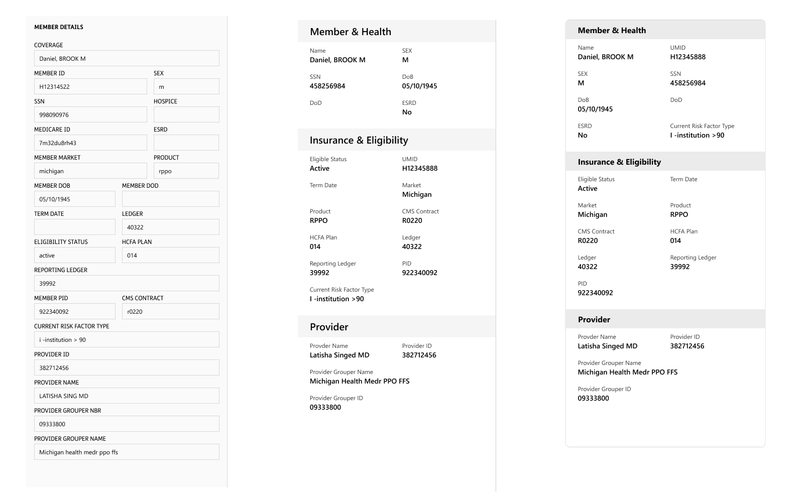 To address the confusion around member details, I asked users to group information cards by importance. Their input led to a new layout that split data into three logical groups, significantly improving scanability and efficiency.