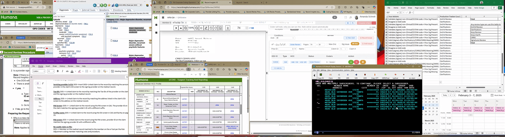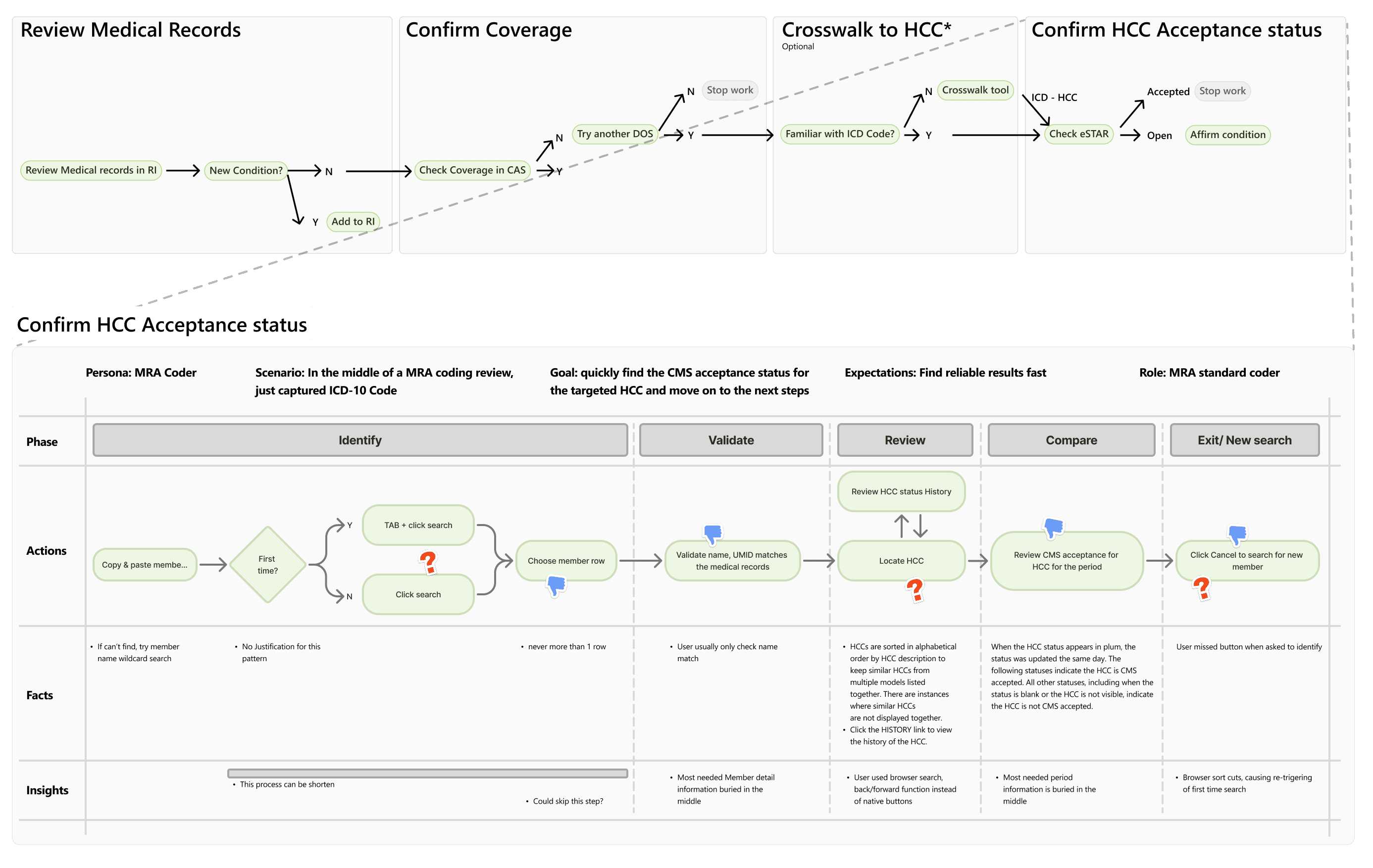 Identified as our primary user group, I followed up with 5 more eSTAR MRA coders by having 30-minute ride-along obervasions and 30-minute interviews to dive deeper into their needs, pain points, and context.