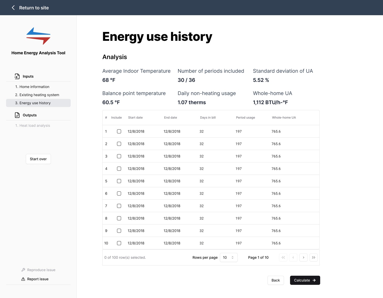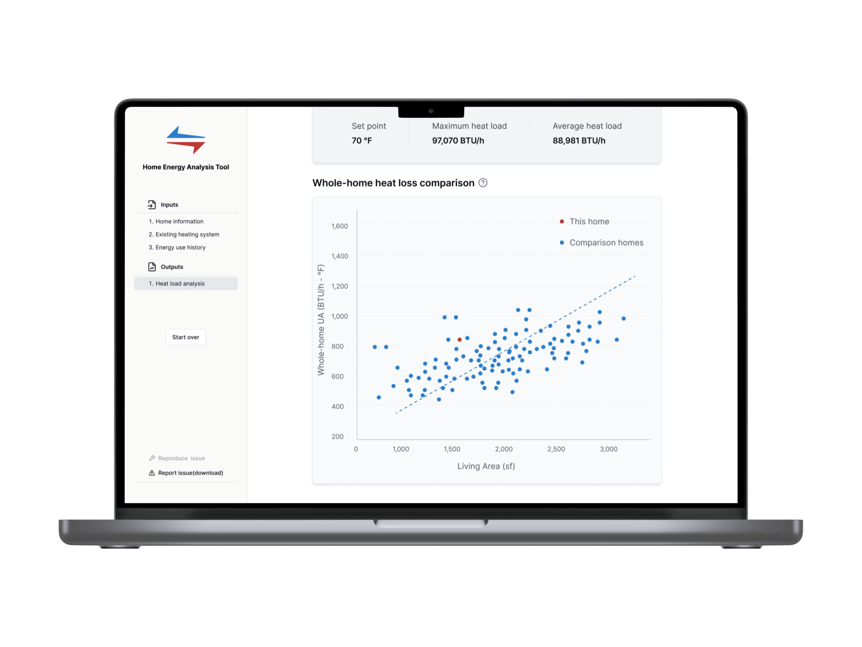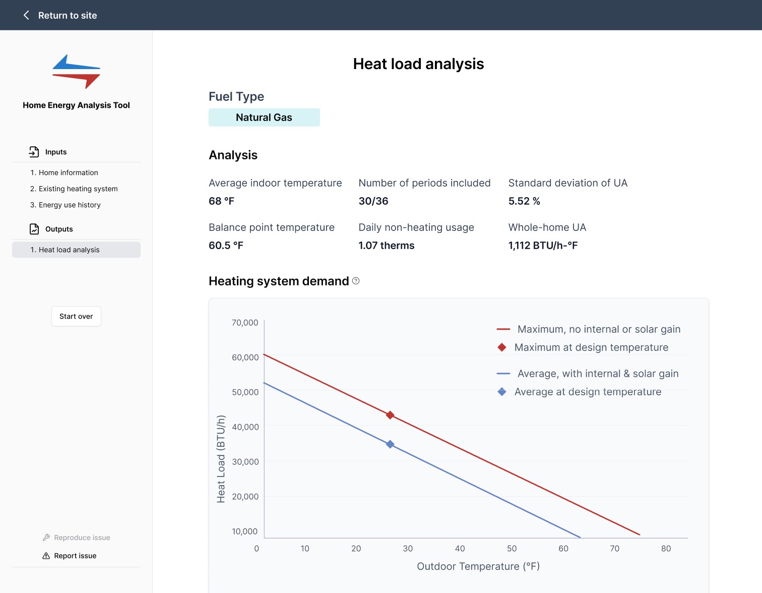 Goal: An refined prototype that incorporates feedback on Beta 1 and allows users to sign in and view, edit, and/or re-run cases they’ve previously run. Existing HLA users will prefer to use this tool vs. the HLA Beta 7 for homes that heat with natural gas.