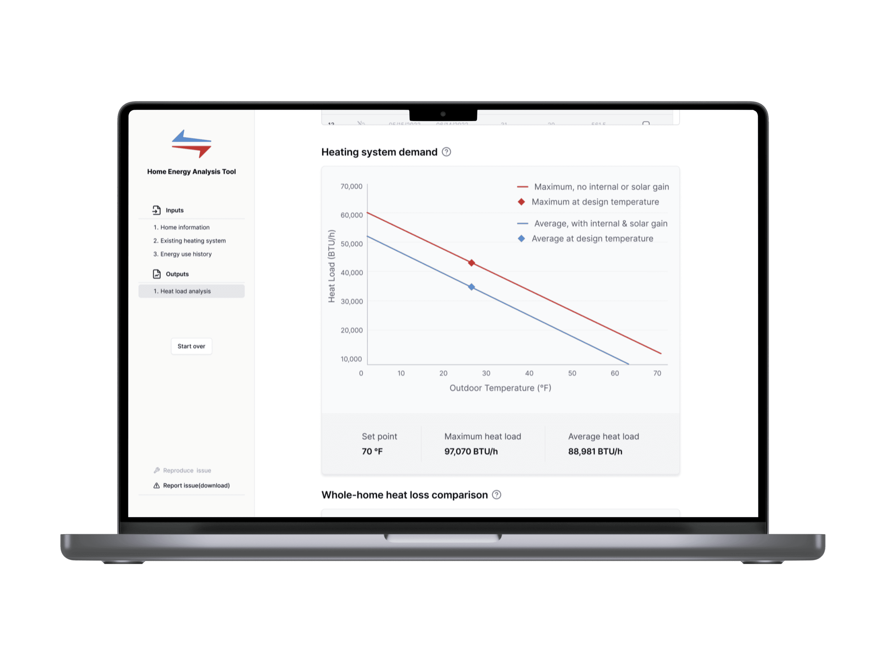 Web app helping energy efficiency coaches appropriately size heat pumps