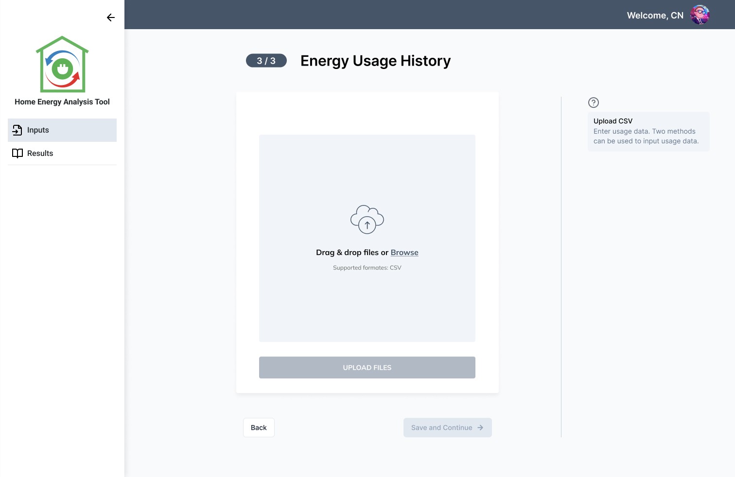 The primary goal of this version is to provide valuable insights to inform the next phase of design and development. To achieve this, the team prioritized functionality over ancillary features. We focused our engineering efforts on the core functionality, identifying natural gas— the most used energy source and source of most usability issues—as the main focus. Additionally, we deferred user registration and case management (dashboard) features to subsequent phases, as they are peripheral to the core workflow. This strategic approach ensures that the MVP delivers essential functionality efficiently, setting the stage for iterative improvement based on user feedback.